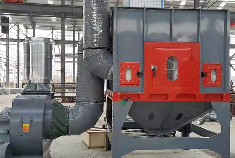 中央除塵設(shè)備是將含有木屑顆粒的氣流經(jīng)過風(fēng)機(jī)運(yùn)輸送至布袋過濾器的導(dǎo)流倉中,氣流在導(dǎo)流板的作用下流速降低,較重的木屑顆粒在重力的作用下落入惠倉里,其中較輕細(xì)的粉塵隨氣流向上吸附在濾袋的外表層面上,經(jīng)過布袋的過濾后,干凈的氣體進(jìn)入排風(fēng)室中并排到外面。隨著過濾工況的持續(xù),積累在濾袋外表面上的粉塵會越來越多,就會增加系統(tǒng)的運(yùn)動阻力,降低系統(tǒng)的除塵效率。脈沖幅度和頻率設(shè)定完成后,在工作的過程中,系統(tǒng)會自動完成過濾布袋的清灰,從而大大增加濾筒的過濾效率并延長過濾布袋的使用壽命。
