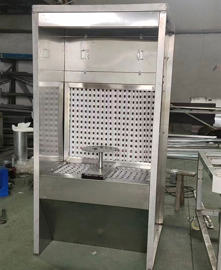 具體尺寸 | 箱體尺寸長2.0米,寬1.0米,高2.2米,臺(tái)面高度0.75米,臺(tái)面深度0.5米。臺(tái)面上附V型過濾紙。臺(tái)面帶小轉(zhuǎn)盤。吸附層使用V型過濾紙。抽屜層過濾使用漆霧過濾棉。 防爆燈一盞。 | ||