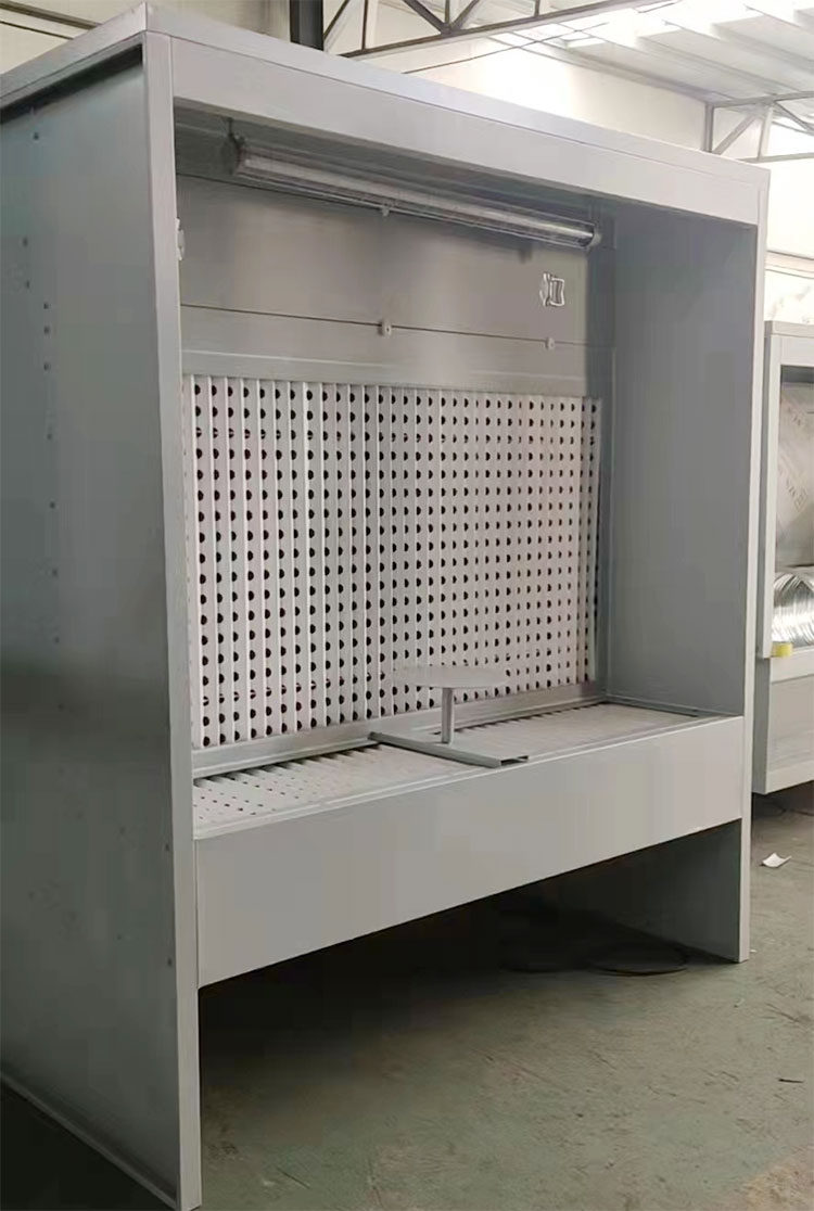 箱體尺寸長(zhǎng)2.0米,1.0米,2.3米,臺(tái)面高度0.75米,臺(tái)面深度0.5米。臺(tái)面上附V型過(guò)濾紙。臺(tái)面帶小轉(zhuǎn)盤(pán)。吸附層使用V型過(guò)濾紙。抽屜層過(guò)濾使用漆霧過(guò)濾棉。