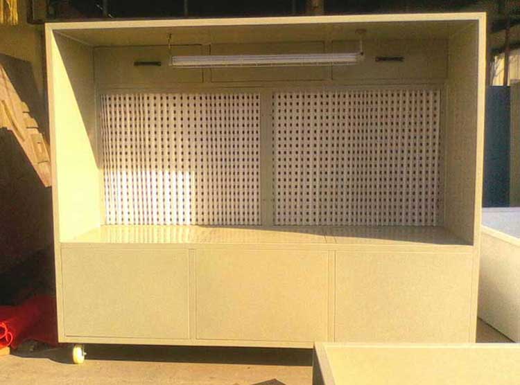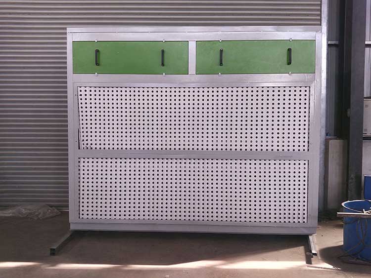環(huán)保干式噴漆柜,用折流式過濾板及纖維過濾棉相結(jié)合方式過濾漆霧,是適用于干式噴漆房內(nèi)的一種新型環(huán)保產(chǎn)品,它采用了慣性分離技術(shù),可有效吸收噴漆車間的漆霧,過濾氣流先經(jīng)過V型過濾紙或迷宮式紙盒,在過濾中氣流多次改變流動(dòng)方向,這樣那些比空氣重的顆粒會(huì)粘附在過濾層上,不會(huì)隨氣流而帶走。剩下部分細(xì)小顆粒經(jīng)過纖維過濾棉進(jìn)行二次過濾,這樣漆霧凈化效果高達(dá)98%以上。初步凈化的廢氣然后通過活性炭吸附箱或光氧催化分解后達(dá)標(biāo)高空排放.