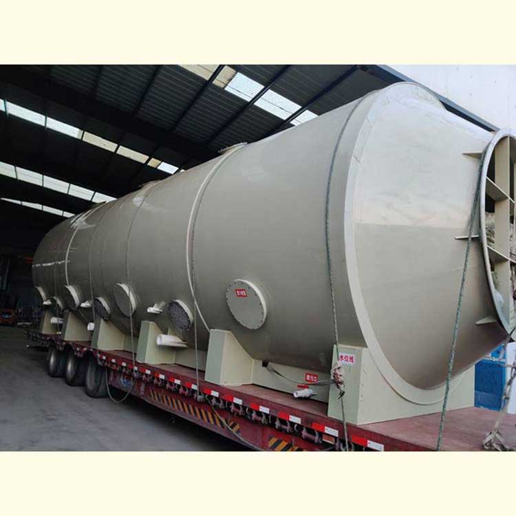 噴淋塔一是一種使含塵氣體與水進行充分洗浴作用的除塵器,PP廢氣塔結(jié)構(gòu)簡單,主要由主體,進氣管,排氣管,噴頭,填料層,旋流板,水源(水池)和水浴循環(huán)系統(tǒng)組成。 它是使特定容器內(nèi)含水率增加并改變氣流方向、降低氣流速度,讓其與塵氣體充分混合,使塵/氣的比重增加并粘附中和,水塵由空氣中脫離出來的一種除塵裝置。